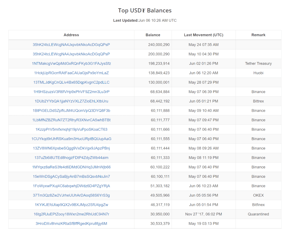 Damit steht dem Stable Coin Tether (USDT) eine ernstzunehmende Konkurrenz ins Haus. Zwar dominiert dieser bislang noch den Stable-Coin-Markt mit einem Marktanteil von über 90 Prozent; allerdings gehört Binance zu den größten Haltern von USDT, wie man Tethers „Rich List“ entnehmen kann.
