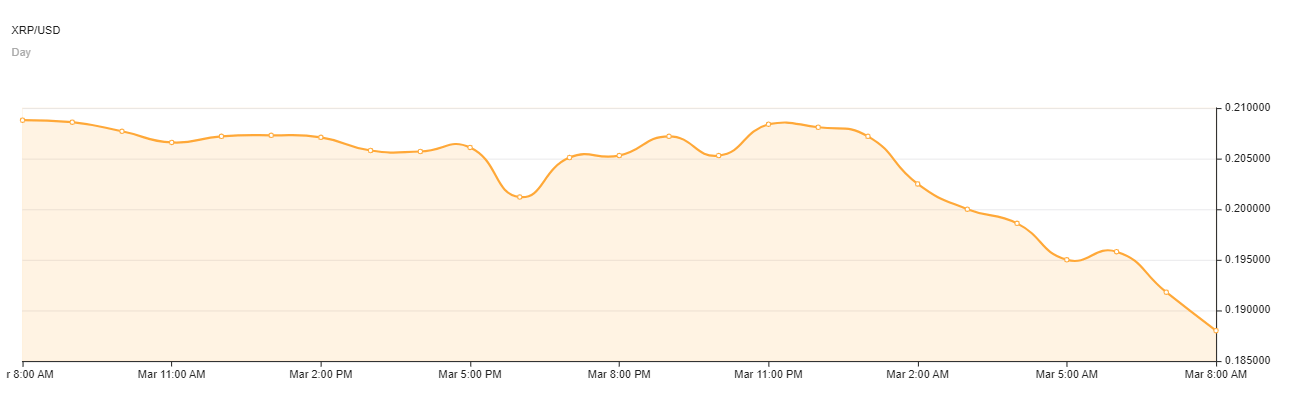 Schlechter als den Bitcoin-Kurs traf es XRP. Die Ripple-Währung hat während der Abverkäufe des letzten Tages knapp 6 Prozent abgegeben, innerhalb einer Woche waren es über 15 Prozent. Damit notiert der Ripple-Kurs (XRP) bei 0,18 US-Dollar.