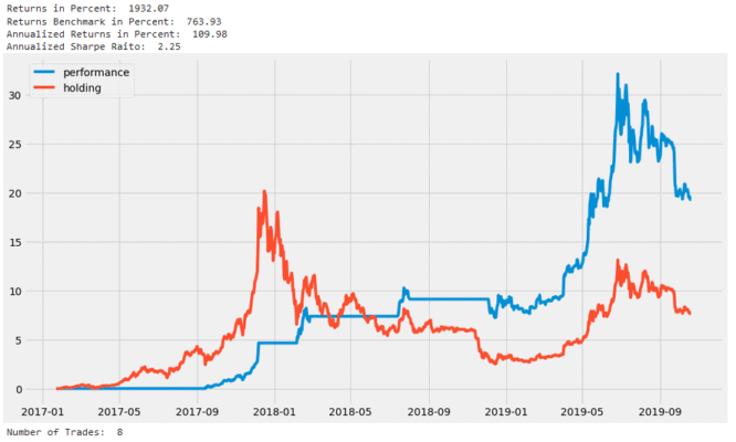 Ein Test einer derartigen Handelsstrategie zeigt, dass sie einem reinen Hodling überlegen wäre: