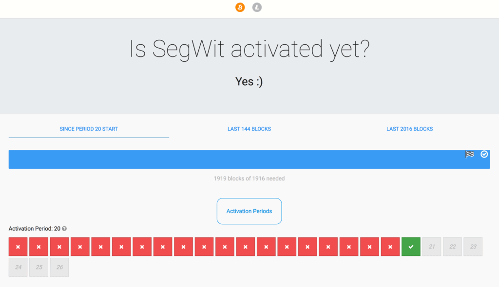 Die Aktivierung wurde mit Block 479.707 besiegelt. Der Block selbst soll der Mining-Pool BitClub geschürft haben. Die Singalisierungsperiode endet jedoch erst am morgigen Tag und erst dann ist der Login zu 100% offiziell.