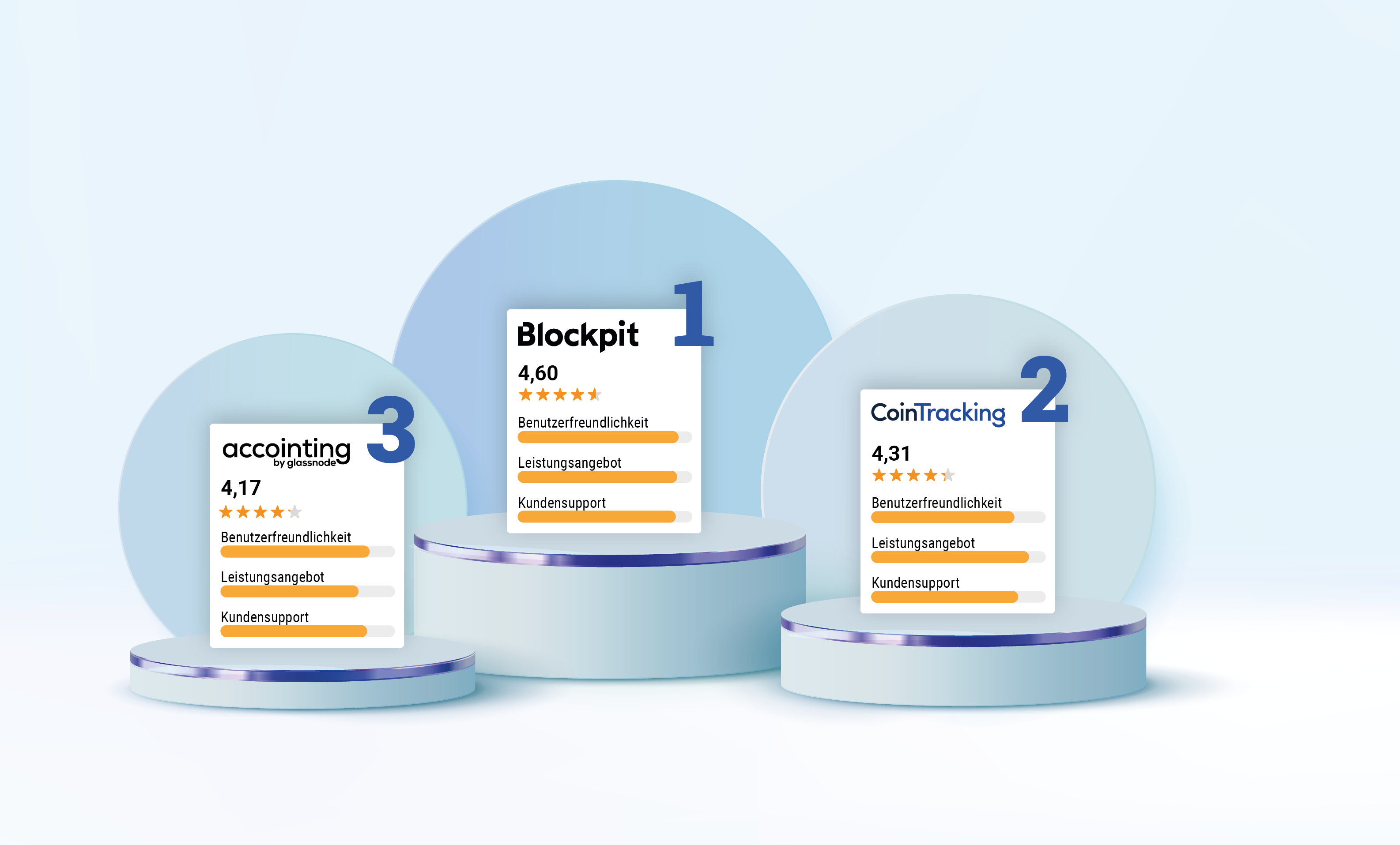 Leicht abgeschlagen findet sich auf Platz drei Accointing. Immerhin 44 Menschen aus der BTC-ECHO Community haben ihre Stimme für das Steuertool aus der Schweiz dagelassen. Mit einer Gesamtbewertung von 4,17 konnte euch das Tool powered by Glassnode überzeugen.