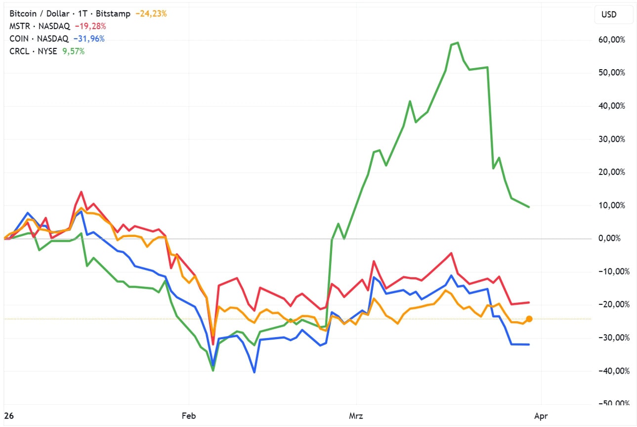 Wir konkurrieren nicht mit diesen Unternehmen, sondern nehmen eine grundsätzlich andere Position ein. Coinbase ist eine Börse. Strategy ist ein gehebeltes Bitcoin-Treasury-Produkt. Circle ist ein Stablecoin-Emittent. CoinShares dagegen ist ein Asset-Manager. Wir entwickeln und vertreiben Investmentprodukte: passive ETPs, aktiv gemanagte quantitative Strategien, Kapitalmarktlösungen, On-Chain-Asset-Management und das unter einem der umfassendsten regulatorischen Rahmenwerke der Branche.