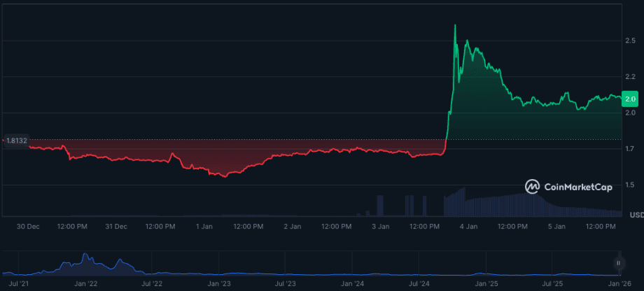 Der DeFi-Token Convex Finance (CVX) sorgt zum Jahresstart für Aufsehen. Zum Zeitpunkt der Analyse notiert CVX bei rund 2,10 US-Dollar, nachdem der Kurs zuvor in der Spitze auf über 2,50 US-Dollar gestiegen war. Innerhalb kurzer Zeit legte der Token mehr als 40 Prozent zu, ohne erkennbare fundamentale Veränderungen im Projekt selbst.