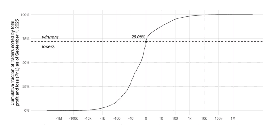 Wie so oft ergibt sich aber eine klare Diskrepanz zwischen den Nutzern und eigentlichen Profiteuren des neuen Systems. Laut der IU/TU-Studie sind nur 30 Prozent aller aktiven Polymarket-Trader wirklich profitabel – und diese Quote sinkt mit dem Wachstum der Plattform kontinuierlich.