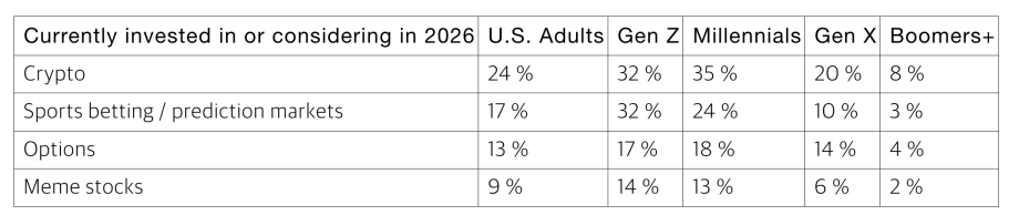 Als Treibstoff fungiert der sogenannte finanzielle Nihilismus. Eine Umfrage von Northwestern Mutual unter über 4.300 Erwachsenen in den USA verdeutlicht den dystopischen Trend: Fast drei Viertel der Befragten, die sich finanziell benachteiligt fühlen, gaben an, dass hochriskante Strategien sie eher ans Ziel bringen als klassische Indexfonds oder Sparpläne. Prognosemärkte passen perfekt in dieses Mindset. Die Ereignisse sind binär, schnell aufgelöst und erfordern minimales Kapital und eine starke Meinung.
