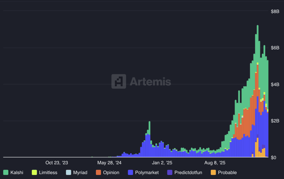 Optimisten verbuchen diese Risiken aber erstmal als Wachstumsschmerzen, die zeigen, dass noch ein weiter Weg vor dem Sektor liegt. Prediction Markets sind früh. Trotz des exponentiellen Wachstums handelt es sich noch um ein Nischen-Phänomen. Etablierte Krypto-Plattformen wie Uniswap hatten im Bärenmarkt 2022 deutlich mehr wöchentliches Volumen als Prognosemärkte inmitten ihres aktuellen Hypes.