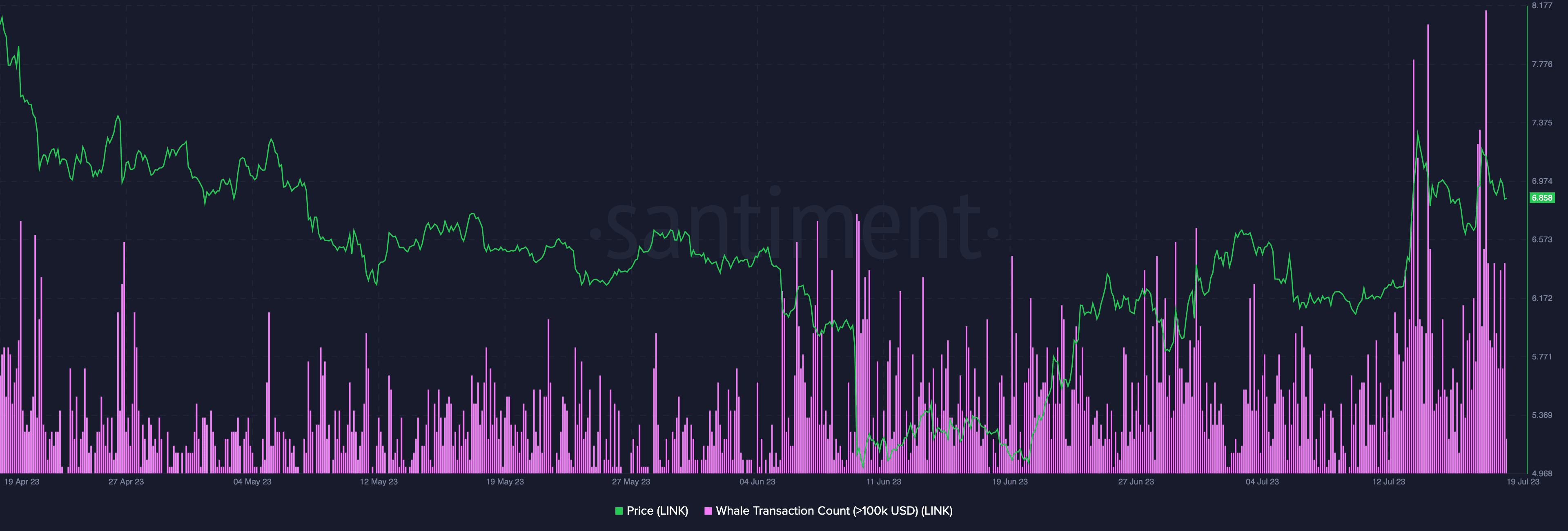 Zusätzlich zu den steigenden Handelsvolumina nimmt auch die Zahl der Wal-Transaktionen in Bezug auf LINK zu.