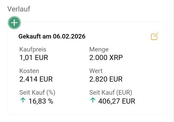 Die Ripple-Position wurde im Zuge des Rückfalls auf die Marke von 1,00 Euro aufgebaut. Der Abverkauf an diese Marke bot ein attraktives Chancen-Risiko-Verhältnis für die Eröffnung einer Position. Der Einstieg zielte darauf ab, von einer möglichen technischen Gegenbewegung nach dem Kurseinbruch auf diese Supportmarke zu profitieren.