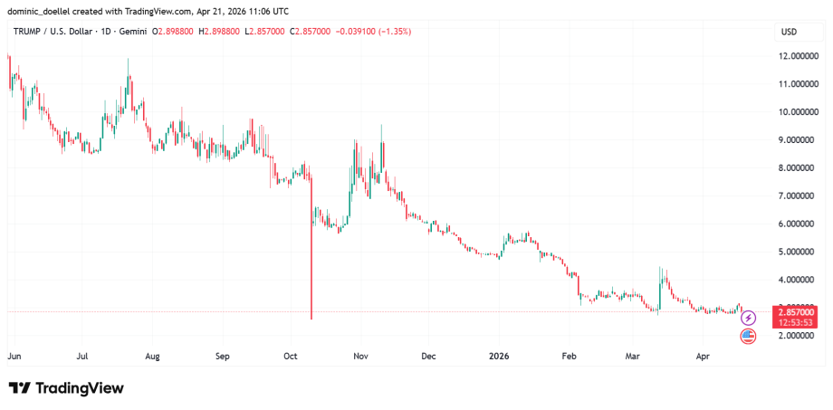 Die niedrigeren Zugangskosten sind kein Zufall, sondern eine direkte Folge der Kursentwicklung. Seit dem Allzeithoch hat der TRUMP Token massiv an Wert verloren. Zum Zeitpunkt des Schreibens notiert der Memecoin bei 2,87 US-Dollar.