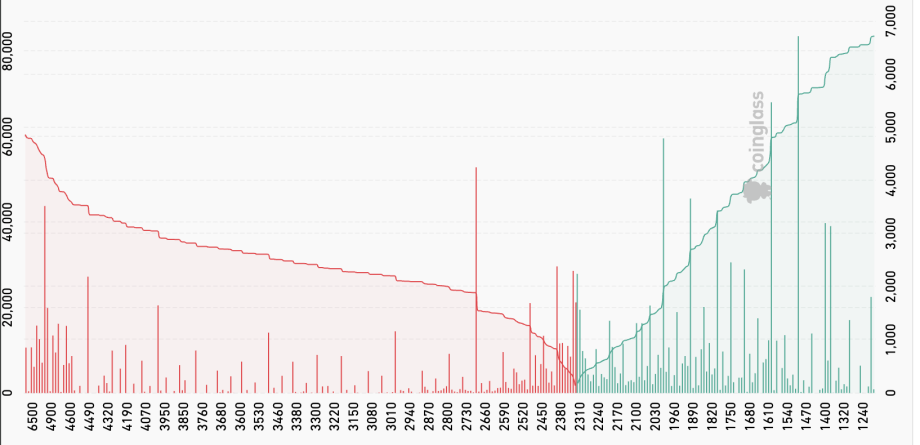 Ein Blick ins Orderbuch liefert zusätzliche Hinweise auf die aktuelle Marktstruktur. Im Bereich von 2.000 US-Dollar zeigt sich ein deutlicher Anstieg an sogenannten Limit Orders, also Kaufaufträgen, die im Orderbuch platziert sind und erst bei einem bestimmten Preis ausgeführt werden.