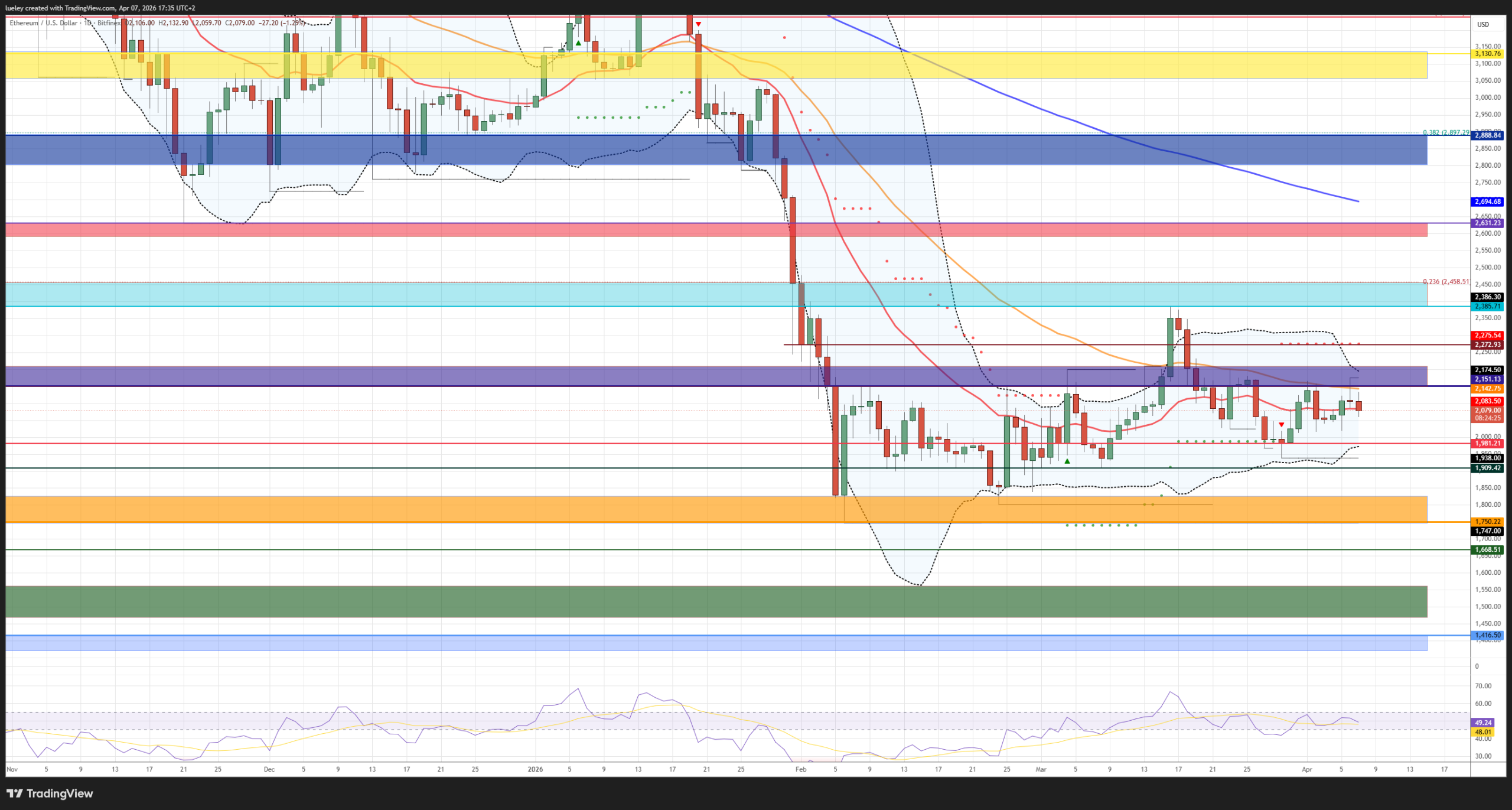 Zwar kann sich Ethereum (ETH) kurzfristig oberhalb der psychologisch relevanten Marke von 2.000 US-Dollar stabilisieren, scheiterte zu Wochenbeginn jedoch erneut bei dem Versuch die 50-Tagelinie nachhaltig zu überwinden. Die Kursentwicklung des größten Altcoins hängt weiterhin am seidenen Faden. Jegliche Eskalation im Iran-Konflikt könnte die jüngste Erholungsbewegung im Keim ersticken. Folgende Kursmarken werden für Anleger in den kommenden Tagen und Wochen relevant.