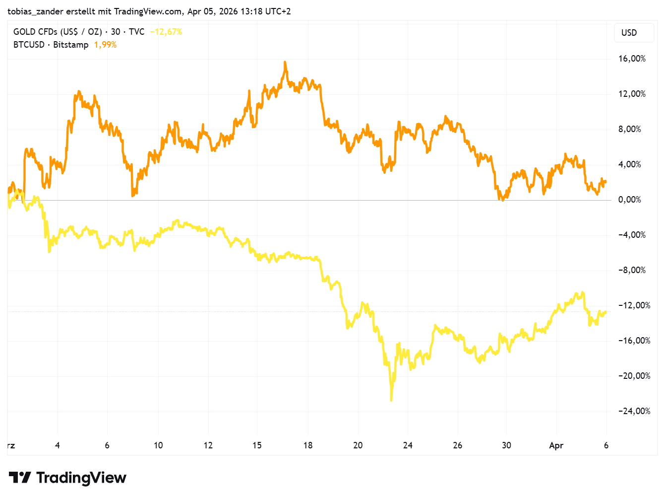 Der Goldpreis hat im März einen historischen Rücksetzer erlebt. Mehr als zehn Prozent ging es nach unten, der stärkste Monatsverlust seit über einem Jahrzehnt. Nach dem Allzeithoch bei über 5.400 US-Dollar im Januar wirkte die Korrektur auf den ersten Blick wie ein nachhaltiger Trendbruch, doch nun könnte sie sich als gesunde Bereinigung herausstellen. Erste Anzeichen sprechen dafür, dass sich Gold stabilisiert und wieder nach oben orientieren könnte. Im Moment des Schreibens kostet eine Feinunze circa 4.640 US-Dollar, was einem Wochenplus von 3,7 Prozent entspricht.