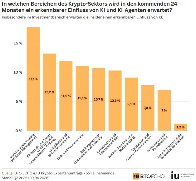 ich freue mich, unseren BTC-ECHO Insider Report für Q2 2026 vorstellen zu können. Über 55 Krypto-Insider haben an diesem Report teilgenommen und liefern mit ihren Antworten wichtige Erkenntnisse darüber, wo der Bitcoin-Kurs zukünftig stehen könnte, wie es um das Sentiment in der Krypto-Industrie bestellt ist und was ihre Meinung zu unserer Sonderfrage ist. In dieser Ausgabe wollten wir nämlich wissen, welchen Einfluss KI-Agenten auf den Krypto-Sektor nehmen.