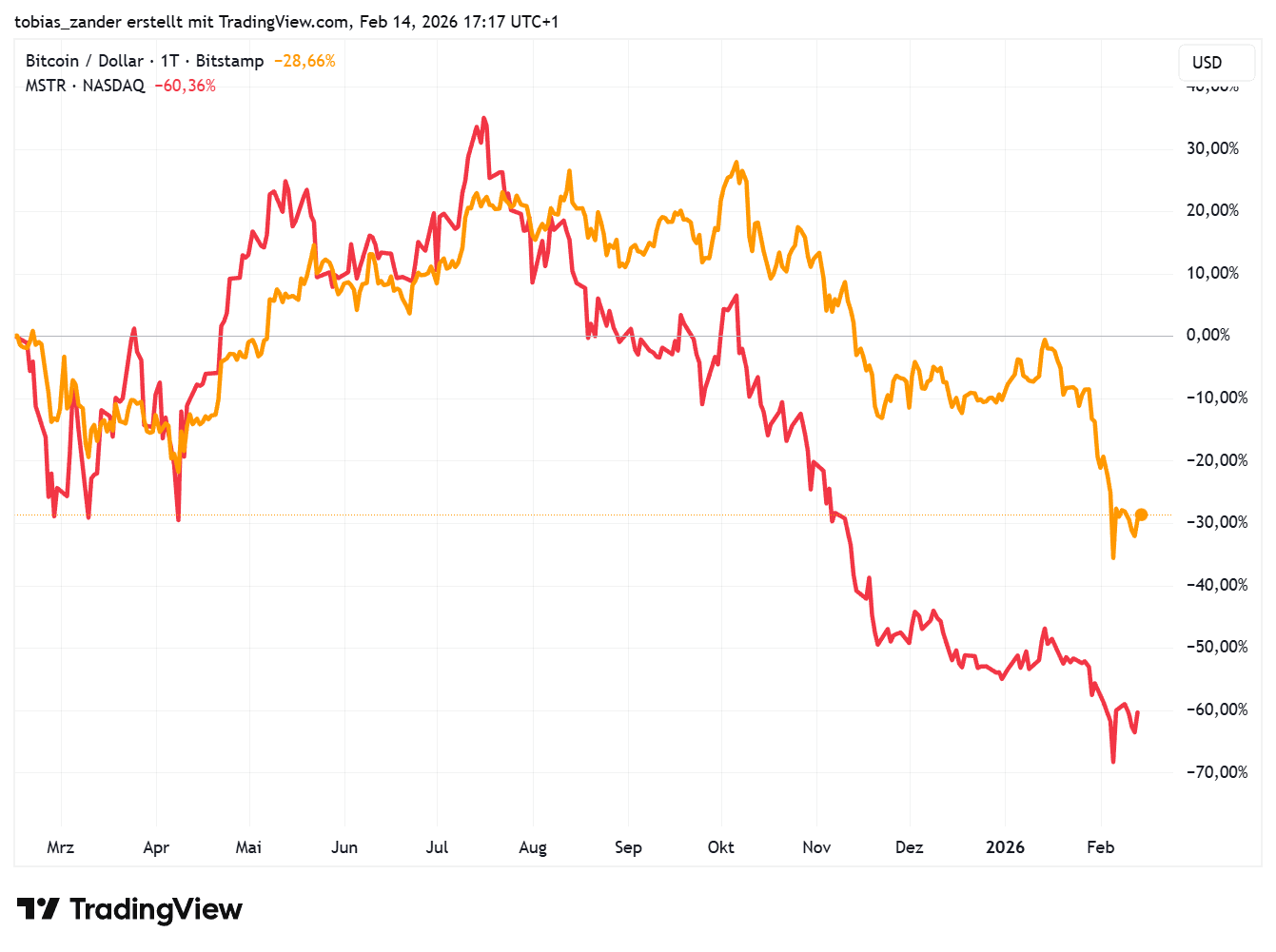 Minus 30 Prozent, Minus 60 Prozent, Minus 90 Prozent? Michael Saylor lässt das kalt