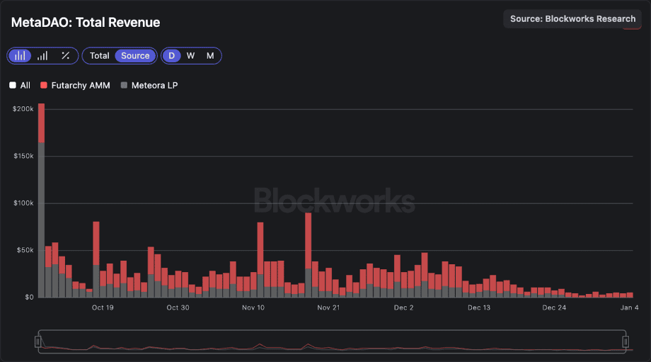 Die Gebühren fließen vollständig an MetaDAO, nachdem die ursprüngliche Teilung mit Projektteams zugunsten des Protokolls angepasst wurde.