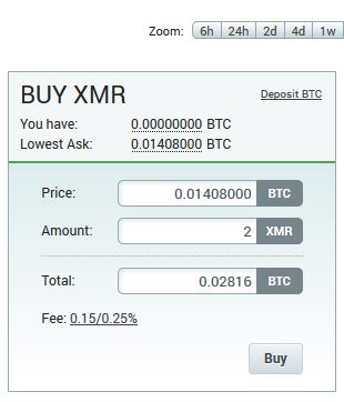 Scrollt man etwas runter, kann man unter “Buy XMR” eine Menge angeben und einen Preis