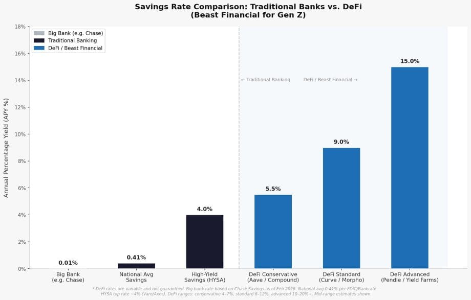 Befürworter der Beast-These verweisen auf deutlich höhere DeFi-Renditen als bei Banken. Diese Erträge sind aber variabel, nicht garantiert und gehen mit zusätzlichen Risiken einher.