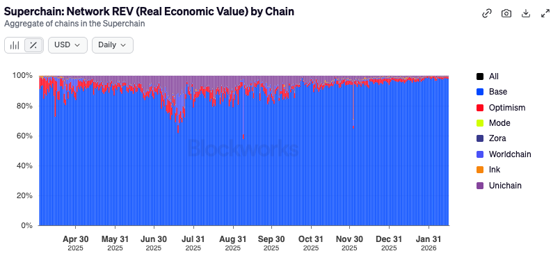 Das Gewicht dieses Abgangs ist kaum zu überschätzen: Base ist laut Blockworks-Daten für 95 Prozent des Real Economic Value des Superchain-Kollektivs verantwortlich. Der OP-Kurs reagierte entsprechend – minus 30 Prozent in sieben Tagen.