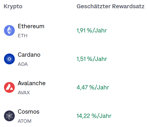 Die Renditen beim Ethereum Staking sind in den vergangenen Jahren gesunken und unterscheiden sich je nach Anbieter. Während Plattformen wie Coinbase aktuell rund 1,91 Prozent pro Jahr bieten, liegen die Werte bei Binance eher im Bereich von etwa 2,5 Prozent und bei Kraken teils bei bis zu 2,65 Prozent. Für eine einfache Einordnung lässt sich daher mit etwa zwei Prozent pro Jahr rechnen. Auf den ersten Blick wirkt das wenig attraktiv, vor allem im Vergleich zu anderen Kryptowährungen, die teils deutlich höhere Erträge versprechen.