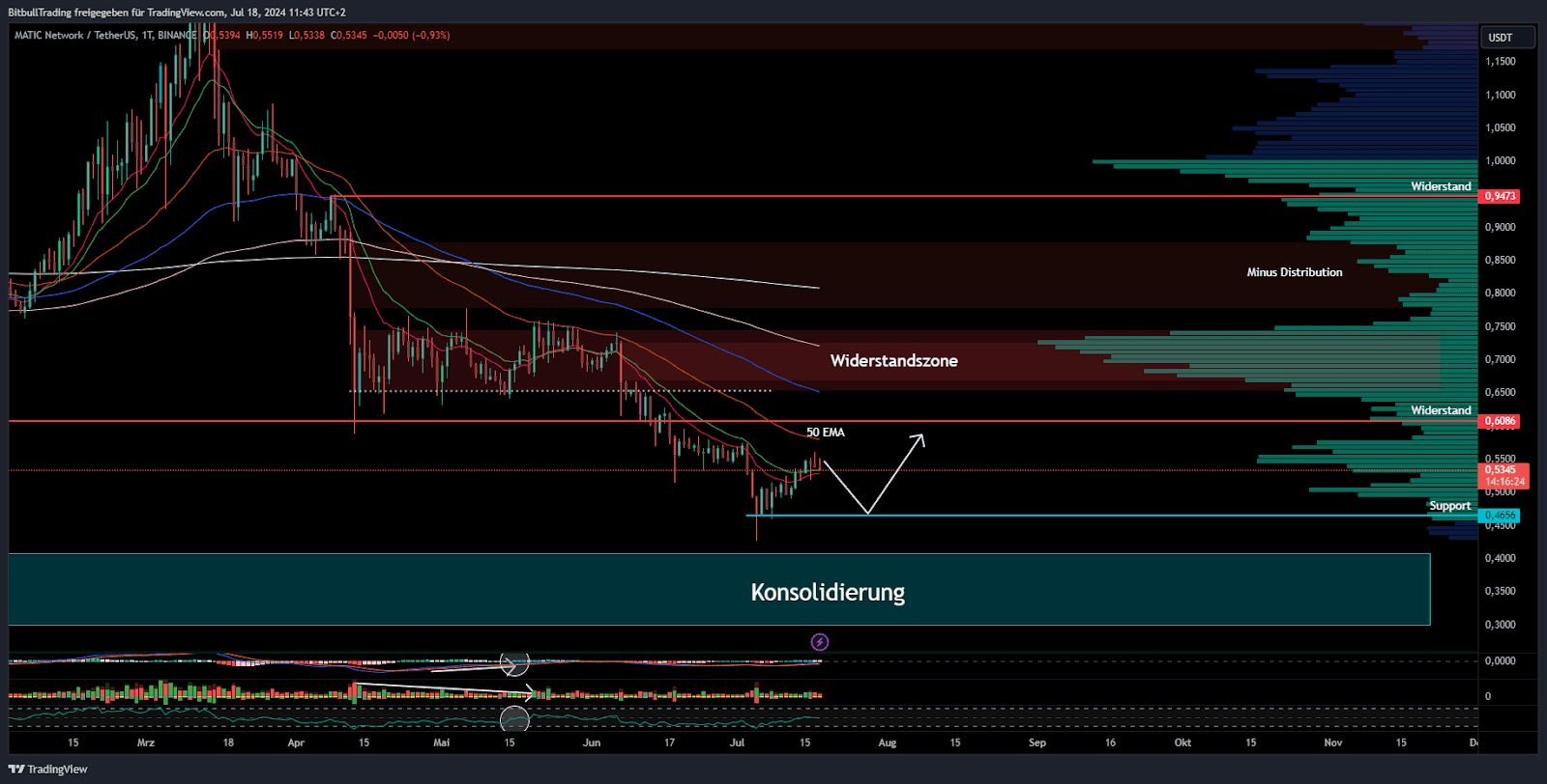 MATIC tradet bei 0,53 US-Dollar und befindet sich weiterhin in einem Abwärtstrend auf dem Tageschart. Andere Altcoins konnten sich aus diesem bereits befreien, aber MATIC scheint davon derzeit unbeeindruckt.
