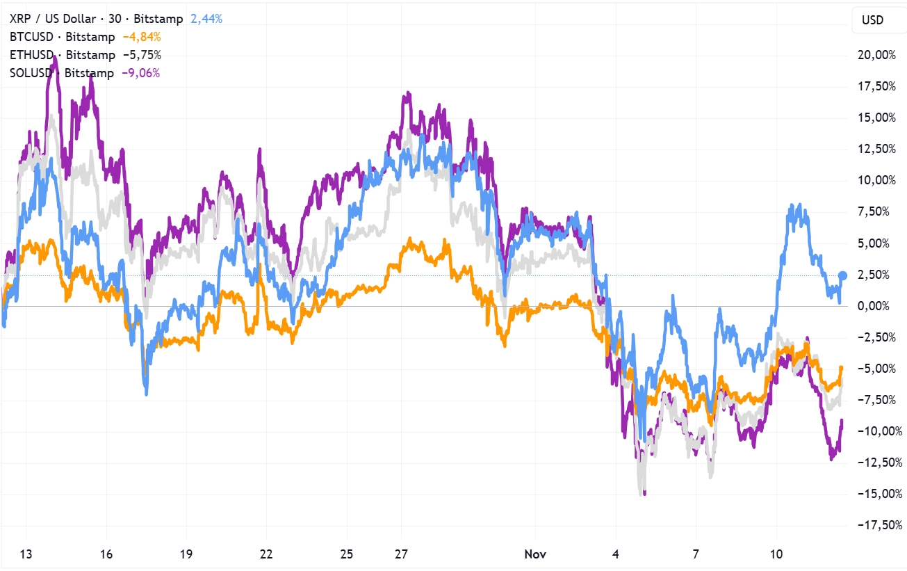 Da sowohl der Ripple Coin als auch der gesamte Krypto-Markt stark vom Zugpferd Bitcoin abhängen, kann die mäßige XRP-Performance der vergangenen Wochen kaum überraschen. Immerhin: Im Gegensatz zu BTC, ETH und SOL verzeichnet der XRP-Kurs auf Monatssicht ein niedriges einstelliges Plus. Obwohl der hauseigene Dollar-Stablecoin RLUSD, der jüngst zum ersten Mal die Milliardenmarke bei der Marktkapitalisierung überschritt, eine immer wichtigere Rolle für Ripple Labs spielt, unterstrich CEO Brad Garlinghouse: “XRP ist das Herz und die Seele dessen, was Ripple tut.”