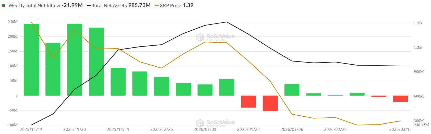 Dass der XRP-Kurs im zurückliegenden Halbjahr um 53 Prozent einbrach, ist für engagierte Krypto-Anleger nur das offensichtlichste Problem. Darüber hinaus leidet der Ripple Coin im März 2026 unter einem historischen Tiefstand bei Ein- und Auszahlungen von großen Krypto-Börsen, kontinuierlichen Walverkäufen und nicht zuletzt einem Markt, der seit Wochen von extremer Angst geprägt ist.