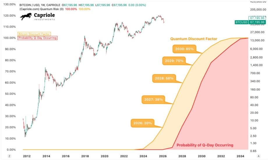 Besonders alarmierend ist für Edwards die daraus abgeleitete Bewertung. Nach seiner Modellrechnung liegt der “Quantum Discount Factor” für Bitcoin aktuell bei rund 20 Prozent. Gemeint ist damit jener Abschlag, den Anleger aus seiner Sicht auf den fairen Wert von Bitcoin anwenden müssten, um das Risiko eines möglichen Quantenangriffs zu berücksichtigen. Ohne Fortschritte bei einer technischen Lösung werde dieser Abschlag in den kommenden Jahren massiv steigen. In 2027 läge er bei 38 Prozent, in 2028 bei 58 Prozent.