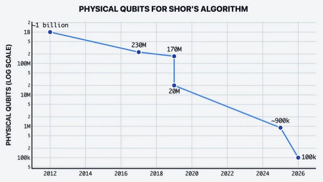Edwards argumentiert, dass der Markt die Gefahr durch Quantencomputer längst zu berücksichtigen beginnt. Seiner Einschätzung nach ist die schwache Kursentwicklung von Bitcoin im Jahr 2025 nicht allein mit makroökonomischen Faktoren zu erklären. Trotz günstiger Rahmenbedingungen habe Bitcoin auffallend schwach performt. Im Report heißt es, der Markt preise das Quantenrisiko bereits ein. Bitcoin befinde sich bereits im “Quantum Event Horizon”, also in jenem Zeitfenster, in dem die Zeit bis zu einer realen Quantenbedrohung ungefähr so lang sei wie die Zeit, die für ein Netzwerk-Upgrade benötigt werde.