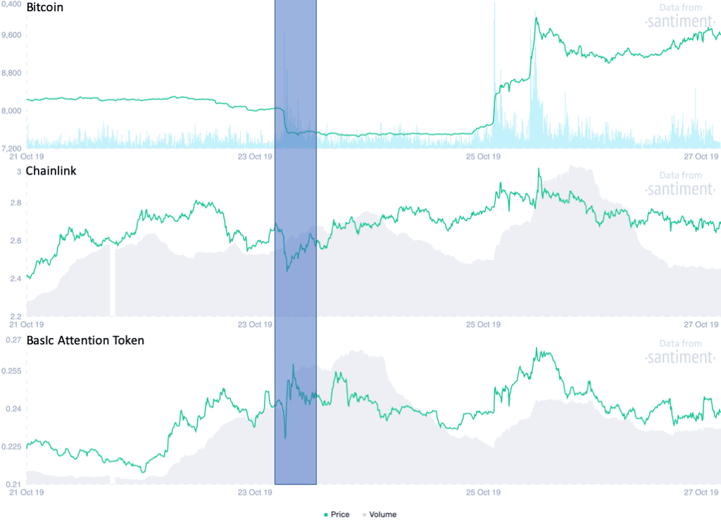 Unabhängig vom LINK-Shilling existieren tatsächlich gute Gründe für die positive Kursentwicklung der beiden Assets: Hohe Liquidität, großes Selbstbewusstsein der Trader, die Klassiker Announcements und Partnerschaften und vor allem sehr aktive BTC- und USDT-Märkte sprechen für eine große Unabhängigkeit der beiden Assets.