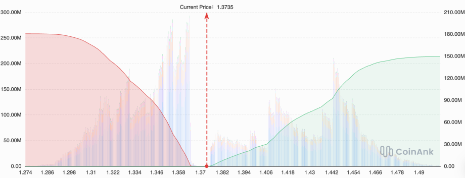 Aus der Liquidation-Heatmap lassen sich derzeit zudem wichtige Kurszonen ableiten. Auf der Oberseite liegt eine Zone mit erhöhten Liquidationen im Bereich bis etwa 1,45 US-Dollar, die kurzfristig als wichtiger Anziehungspunkt wirken kann. Auf der Unterseite rückt dagegen der Bereich bis etwa 1,31 US-Dollar in den Fokus, wo sich ebenfalls eine größere Liquiditätszone gebildet hat. Diese Bereiche könnten daher kurzfristig entscheidend für die nächste größere Bewegung im XRP-Kurs sein.