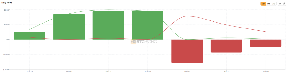 Auch institutionelle Investoren agieren derzeit zurückhaltend. Die Bitcoin ETFs verzeichneten nach einer Zuflussserie erneut Nettoabflüsse. Das deutet auf eine vorsichtige Positionierung großer Marktteilnehmer hin.