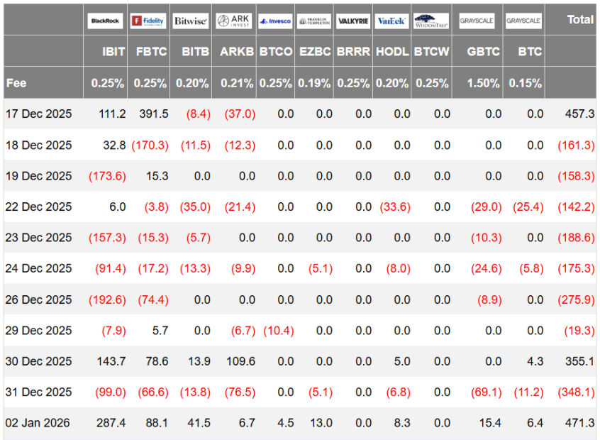 - Am Donnerstag meldeten die Bitcoin Spot ETFs laut Farside Nettozuflüsse von insgesamt 471,3 Millionen US-Dollar. Den größten Anteil verbuchte der iShares Bitcoin Trust von BlackRock mit 287,4 Millionen US-Dollar. Damit erreichte der Fonds den höchsten Tageszufluss seit Oktober 2024. Auf Wochensicht summieren sich die ETF-Zuflüsse auf rund 459 Millionen US-Dollar.