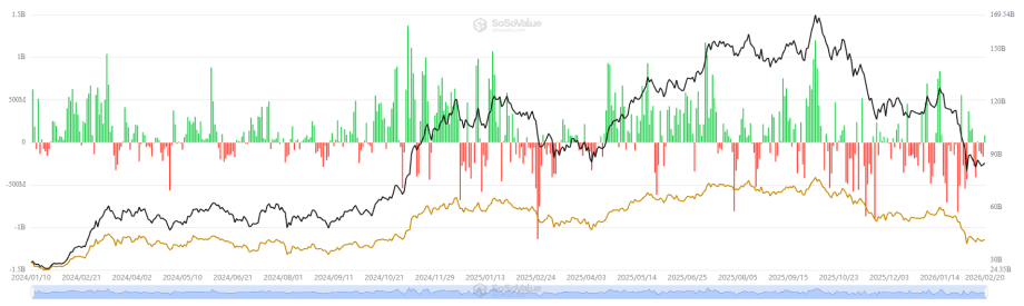 - In der vergangenen Woche summierten sich die Abflüsse demnach auf 315,9 Millionen US-Dollar. Der stärkste Rückgang wurde in der Woche bis zum 30. Januar registriert, als 1,49 Milliarden US-Dollar aus den Produkten flossen. Einzelne positive Handelstage – darunter 88 Millionen US-Dollar Zufluss am Freitag – konnten den Abfluss nicht bremsen.
