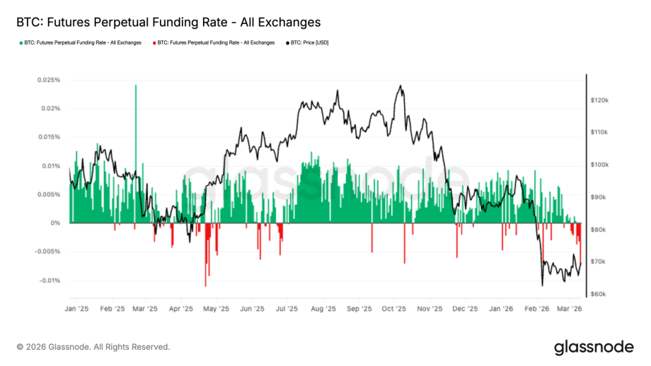 Marktbeobachter verweisen auf negative Funding-Raten an den Derivate-Börsen – ein Indiz für die überfüllte Short-Positionierung von Tradern. Die Analysten von Glassnode sehen daher Potenzial für einen Short-Squeeze, insbesondere wenn die Spot-Zuflüsse weiter anhalten.