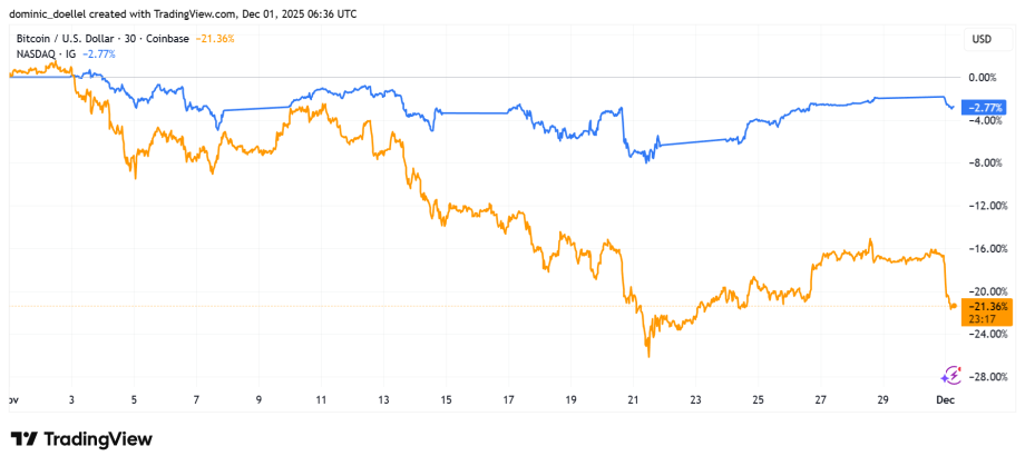 - Bitcoin- und Nasdaq-Daten I Tradingview