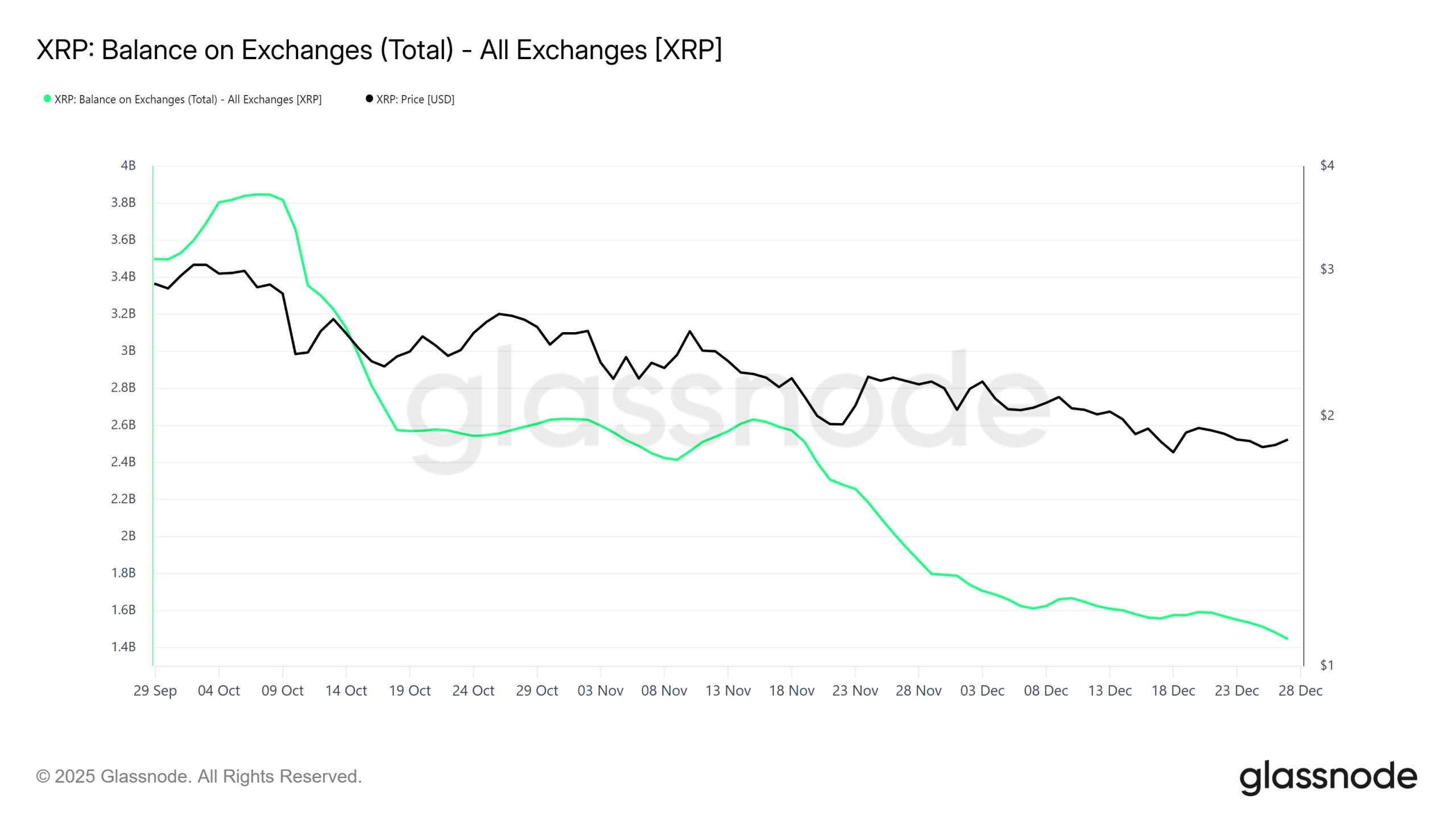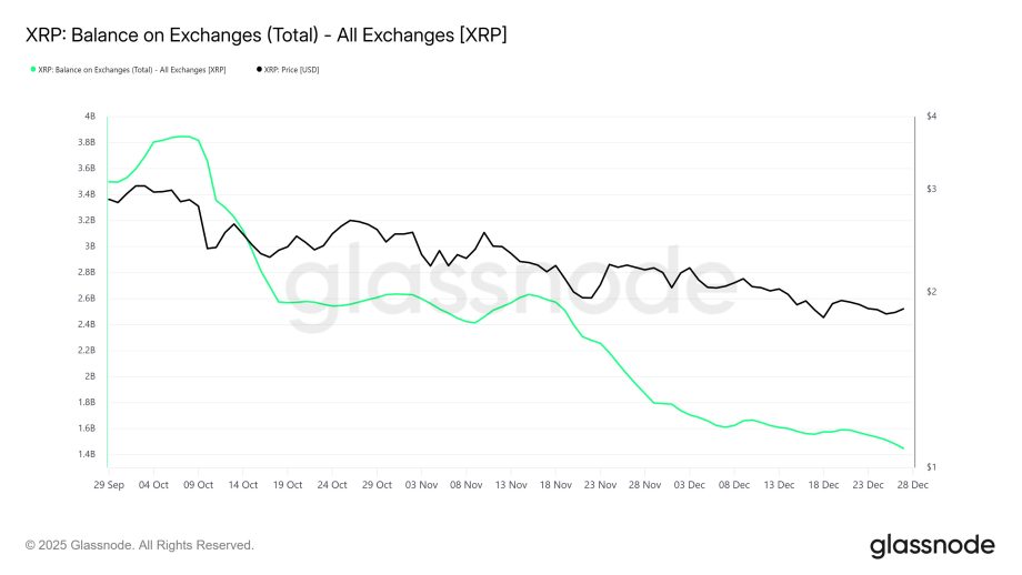- Einerseits bedeutet das vermehrte Aufkommen von Treasury-Firmen wie Evernorth zusammen mit dem ETF-Handelsstart im November, dass immer mehr XRP außerhalb von klassischen Börsen verwahrt werden. Schon nach wenigen Wochen halten die Indexfonds von Bitwise, Canary und Co. knapp 1 Prozent des gesamten Ripple-Coin-Bestandes.