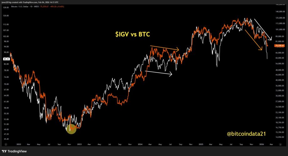 - Bitcoin rutschte am Donnerstagmorgen auf unter 71.000 US-Dollar. Der Grund: Am gestrigen Mittwoch kam es erneut zu einem Abverkauf bei globalen Technologieaktien – insbesondere im Bereich der SaaS-Werte (Software-as-a-Service). Dies riss in der Folge auch asiatische Tech-Aktien in den tiefroten Bereich.