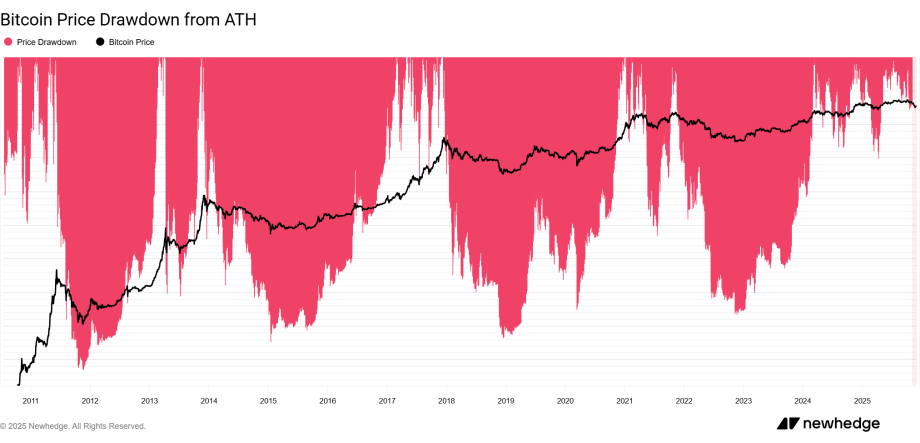 - Aber: Solche Korrekturen sind auch für Bullenphasen nicht untypisch. Daten von Newhedge belegen die historischen Kursrückgänge.