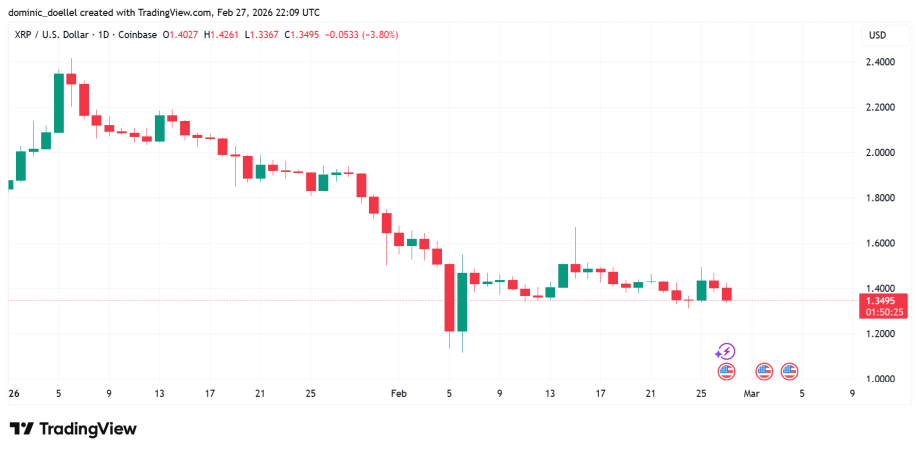 - Der XRP-Kurs lässt sich davon nicht beeindrucken: Zum Zeitpunkt des Schreibens handelt der Ripple Coin bei 1,35 US-Dollar. Seit Jahresbeginn ist der Kurs um rund 30 Prozent gefallen.